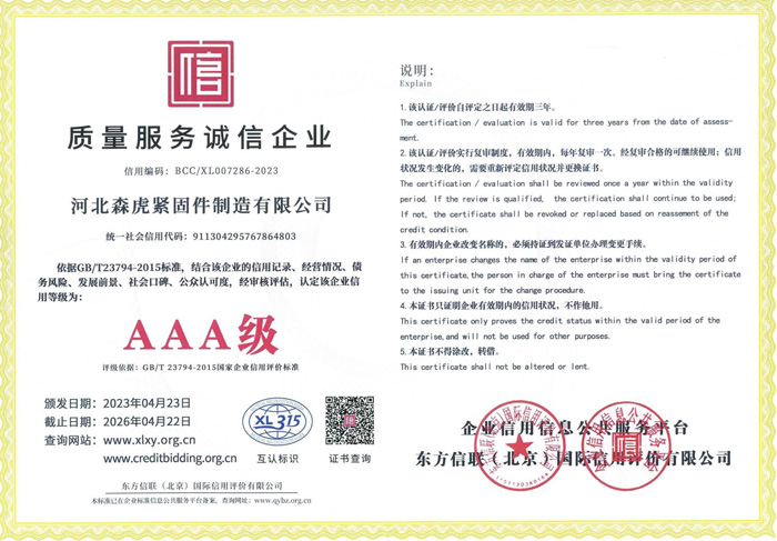 河北森虎緊固件制造有限公司成立于2011年,是建廠較早的緊固件企業。西臨京廣線,東臨京深高速,地理位置優越,交通便利。 主要生產:化學錨栓、機械錨栓、定型化學錨栓、高強度8.8級化學錨栓、自切底機械錨栓、車修壁虎,膨脹螺栓,植筋膠。 質量方針:先進技術、科學管理、優良品質、用戶滿意; ...